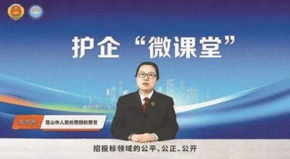 “这次参与投标,整体感觉很顺畅、很规范!”近日,参与竞标江苏省昆山市某广告项目的企业负责人宋先生发现,本次投标过程中有个不同寻常之处——招标室的屏幕上正滚动播放着昆山市检察院检察官录制的依法规范参与招投标活动普法视频课程。