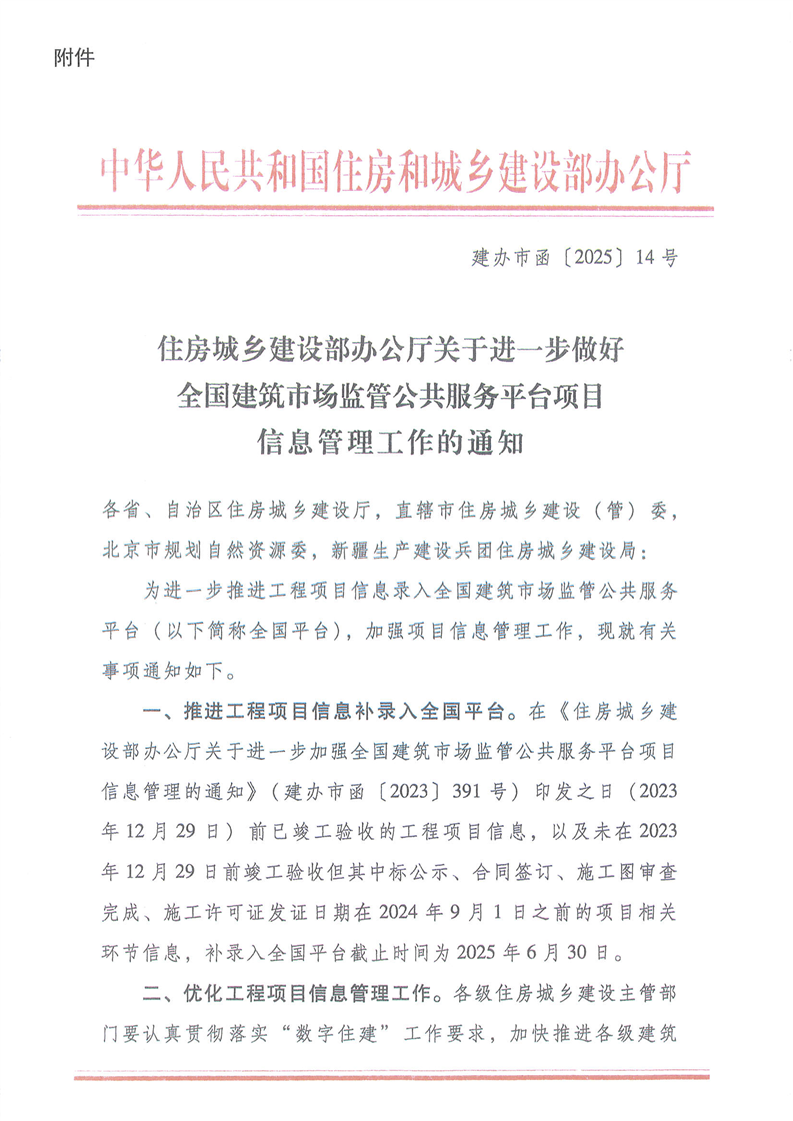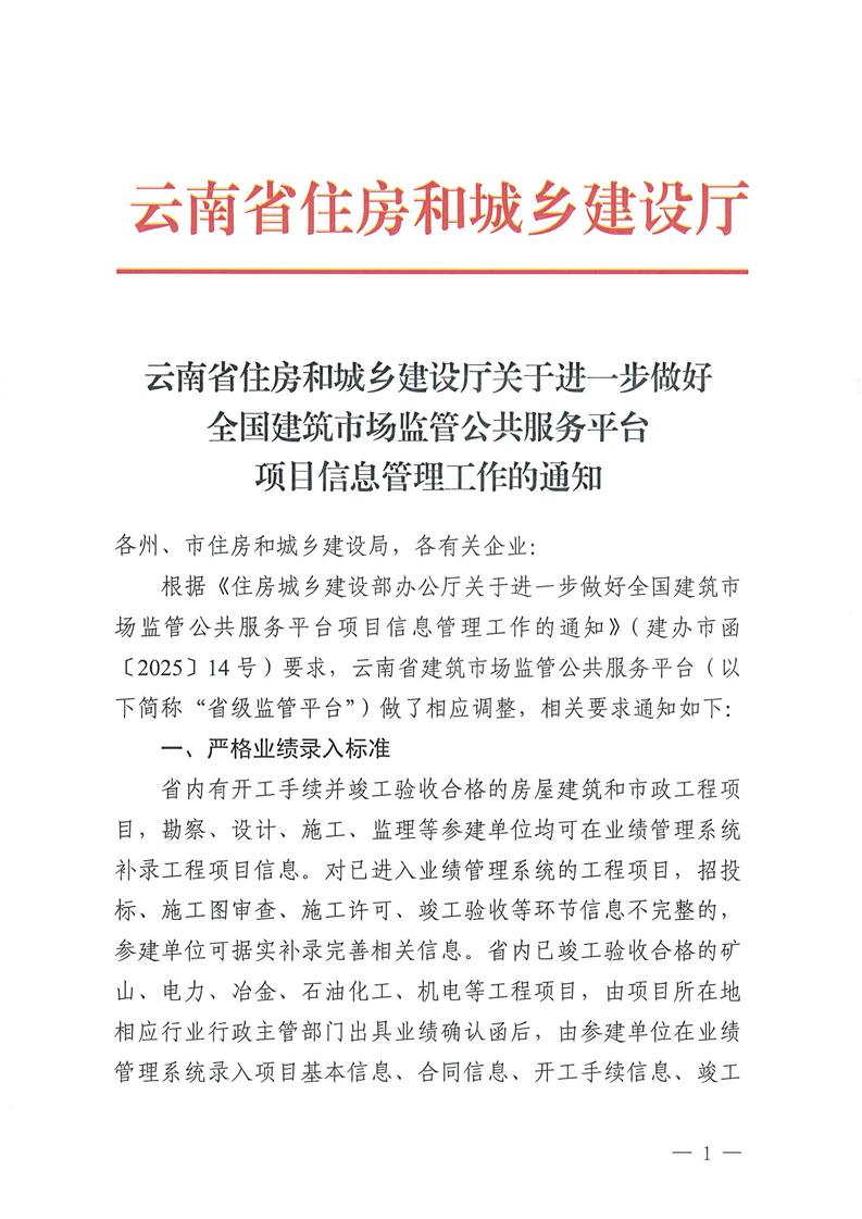 附件:云南省住房和城乡建设厅关于进一步做好全国建筑市场监管公共服务平台项目信息管理工作的通知