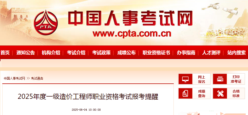 按照《关于2025年度专业技术人员职业资格考试工作计划及有关事项的通知》有关安排,2025年度一级造价工程师职业资格考试将于10月18、19日举行。现就报考有关事项提醒如下: