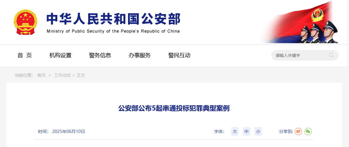 近年来,全国公安机关深入贯彻落实《国务院办公厅关于创新完善体制机制推动招标投标市场规范健康发展的意见》,会同纪检监察机关、行政主管部门依法严厉打击串通投标犯罪活动,成功侦破一批涉工程建设、医疗设备采购等领域的大要案件,对违法犯罪分子形成有力震慑,助力招标投标市场规范健康发展。